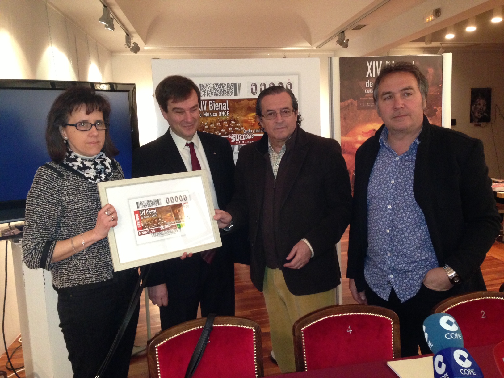La Diputación colabora en la celebración de este concierto con la cesión de su espacio cultural más emblemático, el Teatro Juan Bravo, comentó Monsalve, quien, en nombre de la institución provincial, recibió un cupón conmemorativo de la Bienal de Música de manos del delegado provincial de la Once.
